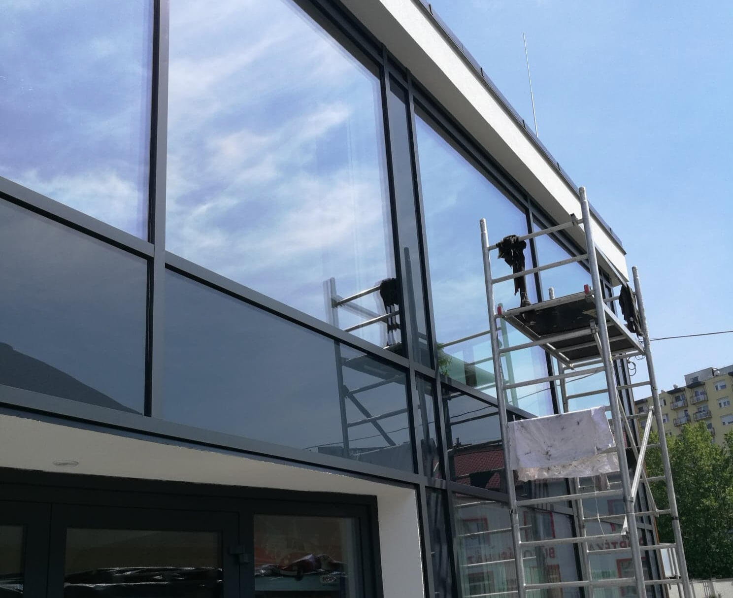 Vállaljuk ablakok, nagyobb üvegfelületek folyamatos és egyszeri takarítását, állványozva, kosaras emelő használatával is